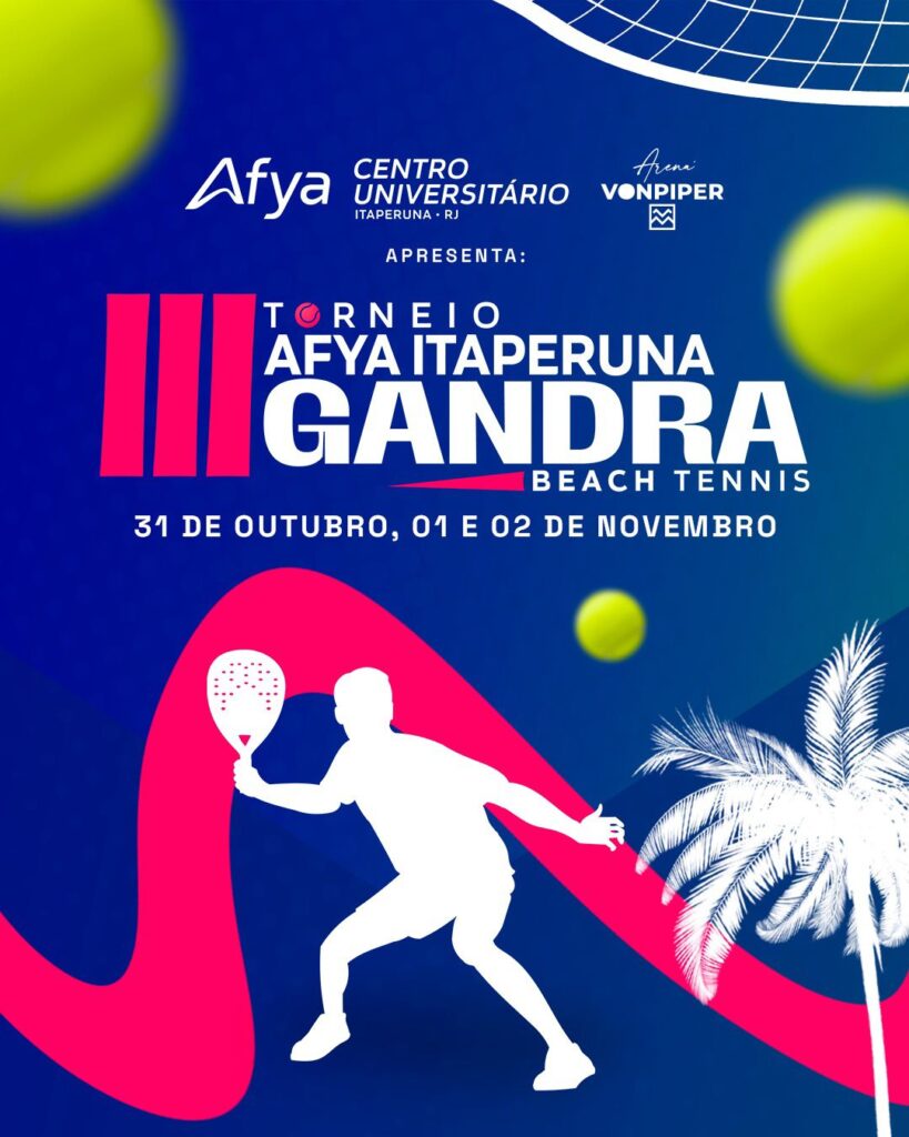 Itaperuna vai receber, entre os dias 31 de outubro a 2 de novembro, o III Torneio Afya Itaperuna Gandra Beach Tennis, na Arena Vonpiper. O evento promete ser um dos maiores já realizados na região, reunindo atletas de diversas cidades e oferecendo uma premiação total de R$ 10 mil.